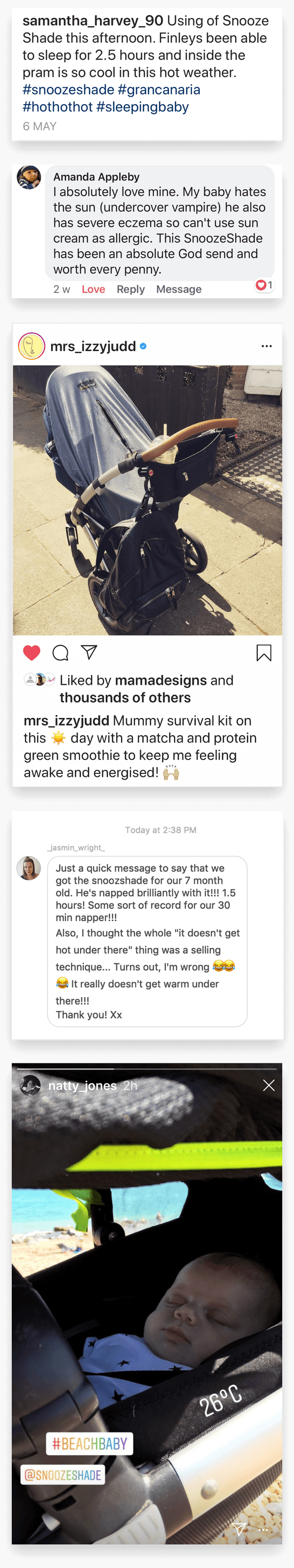 SnoozeShade was created by British mum Cara, who needed a safe, breathable, and baby-friendly way to help her daughter sleep—anywhere. Since launching SnoozeShade Original in 2010, our award-winning range has helped hundreds of thousands of parents enjoy stress-free naps, safer sun exposure, and more freedom to get out and about—without sacrificing their baby’s sleep.