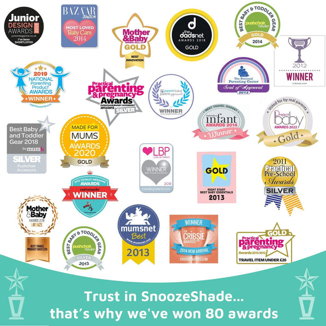 It’s the only baby sunshade to be endorsed by international baby-sleep experts, be approved by the Melanoma International Foundation, and to have won more than 80 awards – including Mother & Baby Gold for Innovation, Dadsnet Gold and Made for Mums Gold.