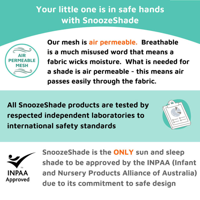 • SnoozeShade’s fabric has been tested multiple times by well-respected, independent laboratories and scores highly for air permeability