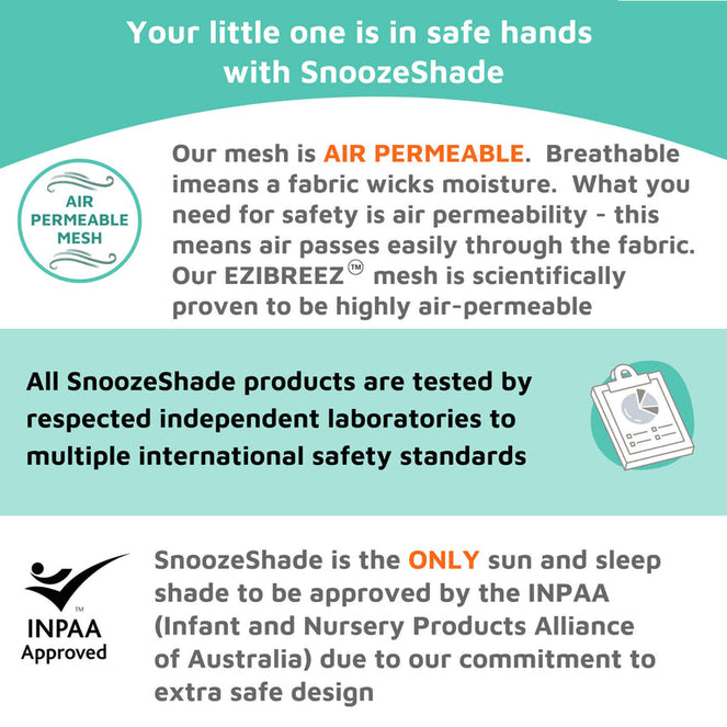 Every SnoozeShade is designed to meet the same European regulations as a toy for a newborn baby – the highest standard possible – and our safety features include the following: