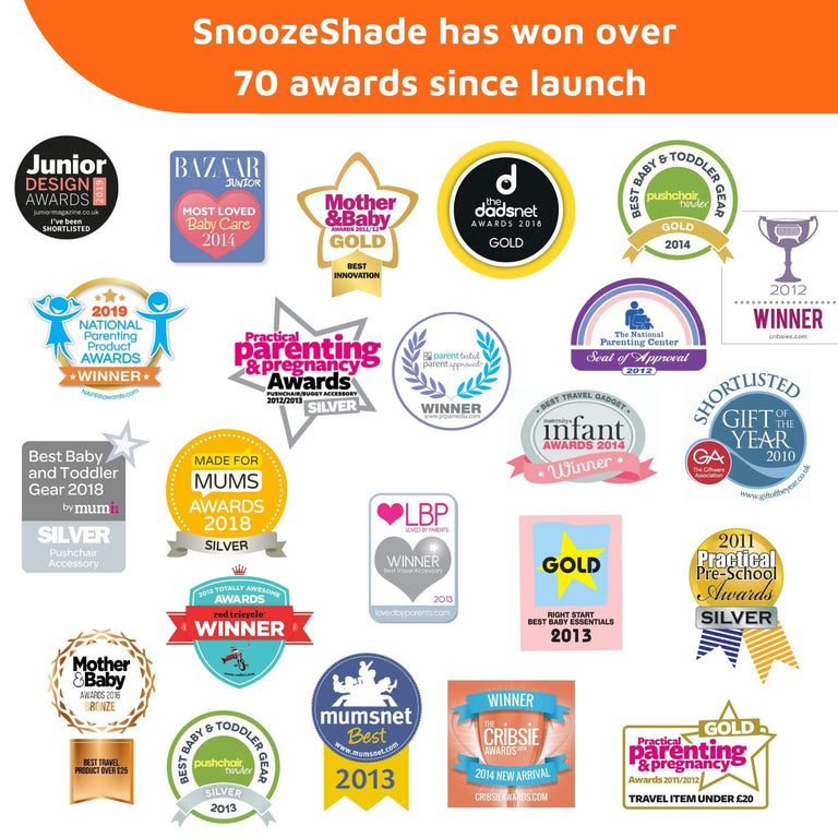 How does it work? It creates a comfortingly dark space that encourages naps by boosting melatonin (the sleepy hormone). When your baby naturally stirs at the end of their sleep cycle, the unique fabric prevents them from latching on to visual stimuli that may stop them getting the deeper, longer nap they need. SnoozeShade can be used in snooze mode or shade mode, both of which provide safe UV protection.