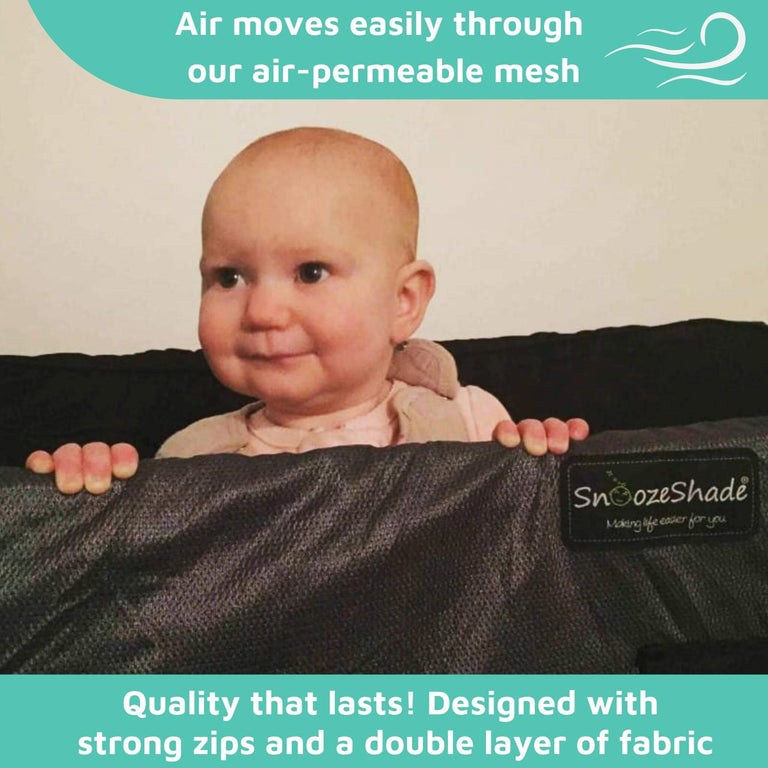 We really are big fans of snooze shades and find they work wonderfully for our baby (now 11 months). Our only tiny issue is that, in the hot summer months, we really like to have a fan on near his cot to keep him cool and give him a bit of a breeze. I absolutely get that snooze shades are air-permeable, which gives me so much reassurance, and also that this means they are safe to use in hot weather. The only thing is that the 'breeze' doesn't get through the fabric. We've tried again and again but we just can't feel it through the fabric, even when it's close (and usually we don't like it too close anyway). So that's our only issue - we personally find we sleep a lot better with a bit of a cooling breeze and would like the same for him as he can get a bit hot (we don't have air-conditioning). Other than that, they are just marvellous, I honestly wish they made them for adults as well - I think I could do with one :-)