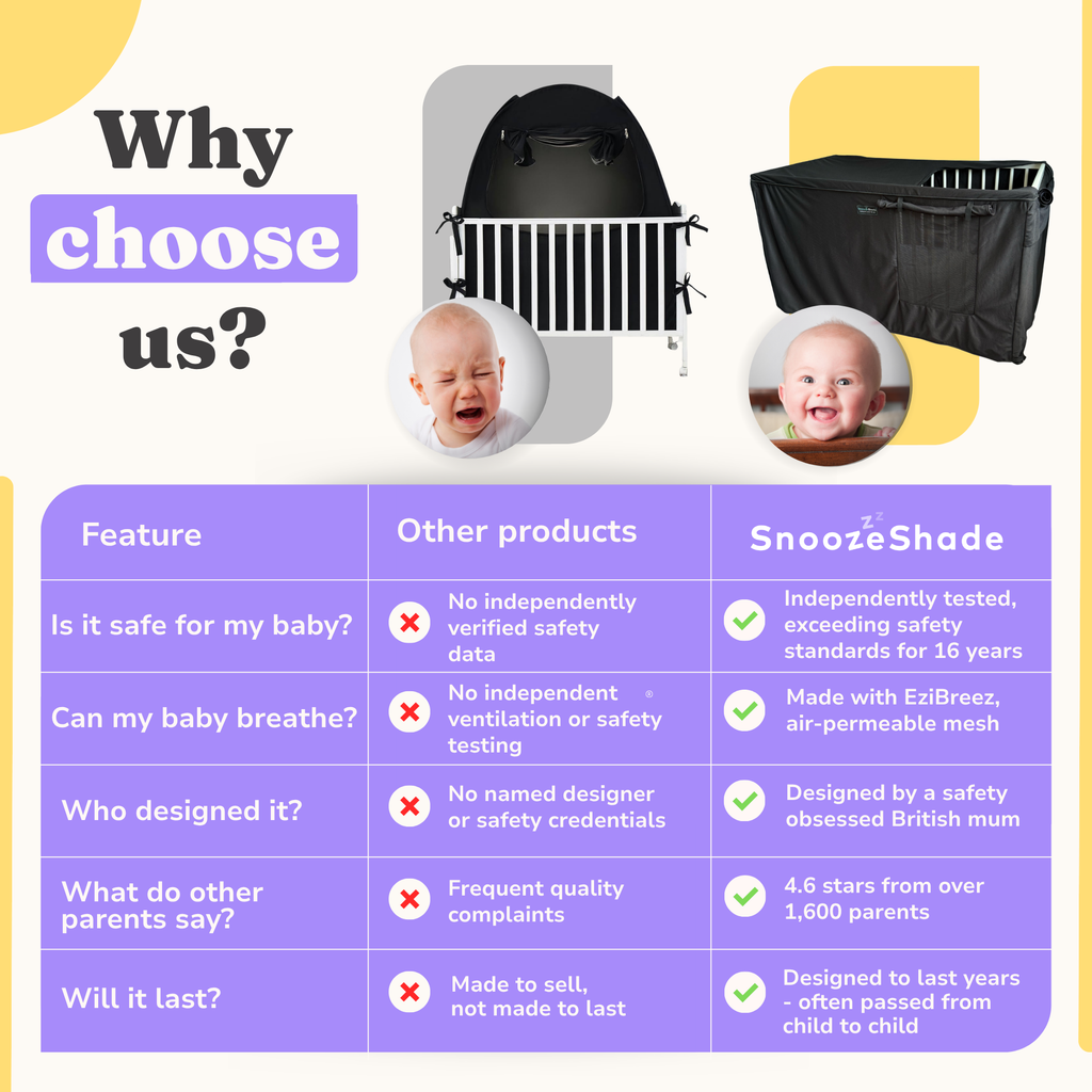 Click here to take our quick quiz to see which SnoozeShade for cots you need!