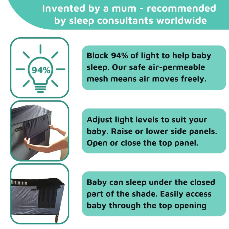 SnoozeShade for Cots | Cot blackout canopy | Air-permeable fabric